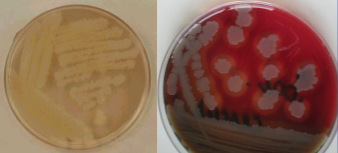 Around colonies, there is a strong beta-hemolytic zone