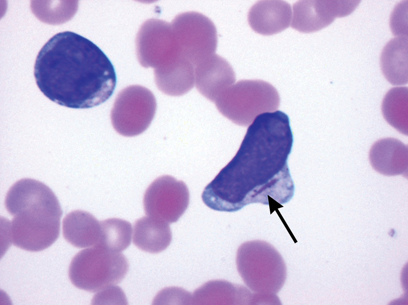 Elderly patient presents with fatigue, easy bruisability, and cervical lymphadenopathy -> CBC with 60K WBC and 95% lymphocytes and this smear (see attachment 2)