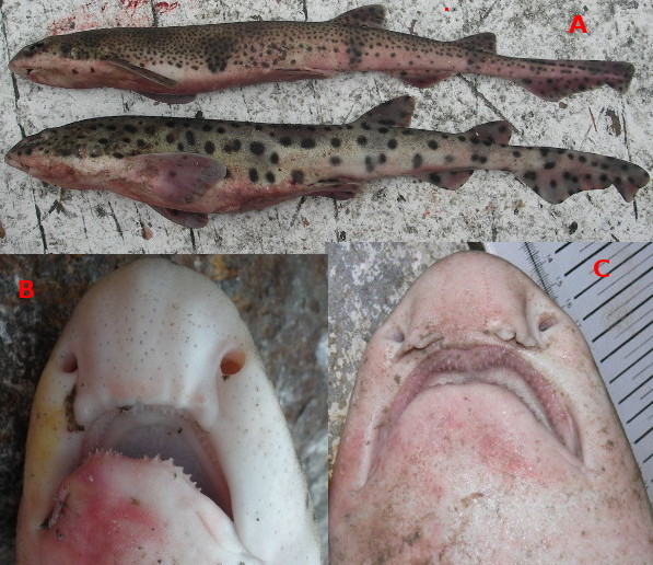 Coloración azul oscura (con dibujos muy marcados en el dorso) y con la panza blanca.