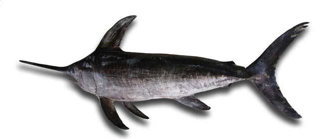 Primera aleta dorsal con dos bandas amarillas transversales y una mancha negra en el extremo superior.
