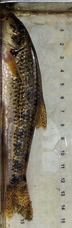Una aleta dorsal, con 12 radios duros y 9 blandos.