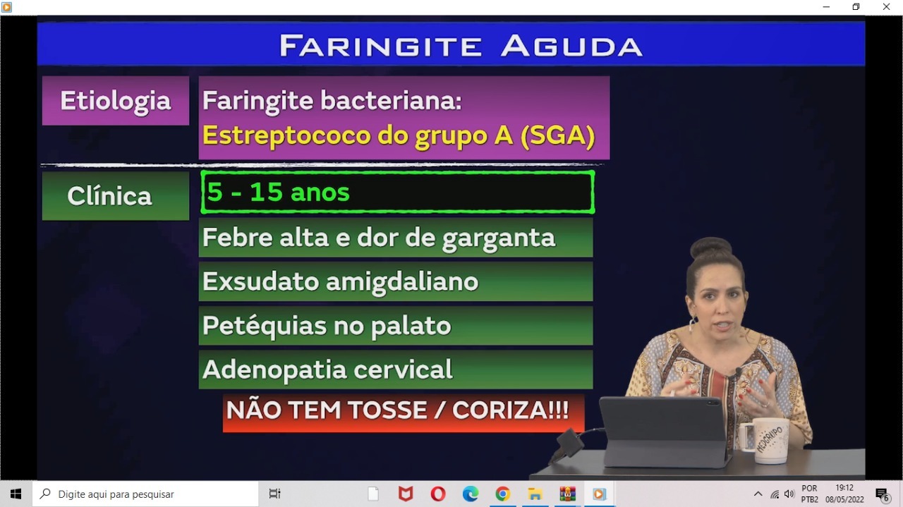 abaixo de 5 anos geralmente é viral. geralmenteo quadro já começa com febre alta e dor. petequias no palato sao os mais caracteristicos porem nenhum sao patognomonicos