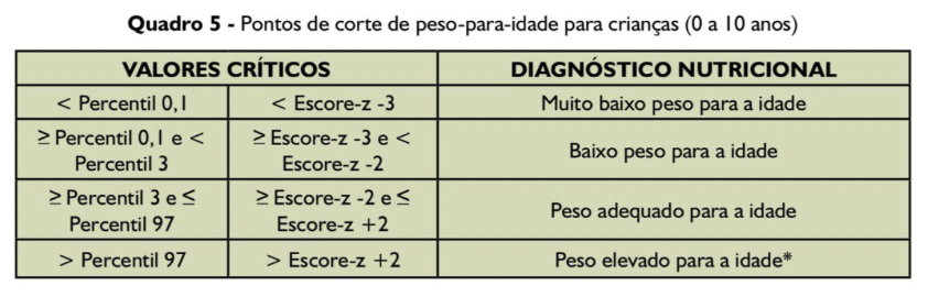 Criança com escore Z de peso para idade entre -3 e -2, qual o diagnóstico?