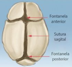 Quais outros nomes podem ser dados para as fontanelas anterior e posterior, respectivamente? Qual é o tamanho de cada uma delas?