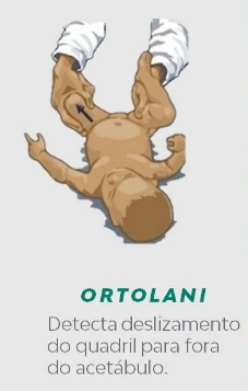 Conhecido por Teste de Ortolani, o procedimento não causa dor. Consiste na flexão e abdução das pernas da criança para a verificação da estabilidade do quadril e/ou existência de luxação (deslocamento de dois ou mais ossos em relação ao ponto de articulação normal). Procurar assimetrias ou percepção tátil de fuga da cabeça do fêmur do acetábulo.