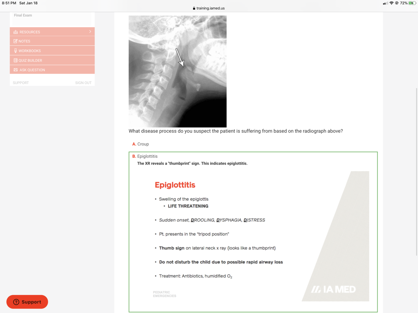 This pediatric disease process is represented by a “thumbprint” sign on X-ray.