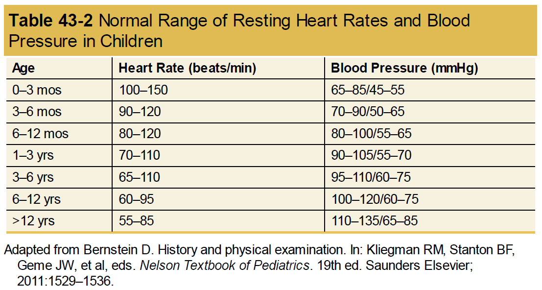 A useful formula taught in the Pediatric Advanced Life Support (PALS) course, from the American Heart Association, is that for children aged 1 to 10 years of age, the 5th percentile for systolic blood pressures is 70 + 2× age in years and the 50th percentile is 90 + 2× age in years. The 5th percentile is taken as the cutoff for hypotensive shock in the PALS algorithms