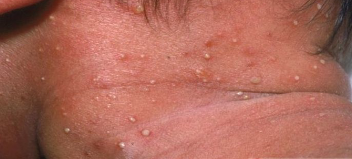 6 week old baby with tiny blisters on body