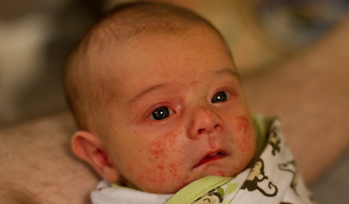 2 week old baby with rash on face after coming home from hospital