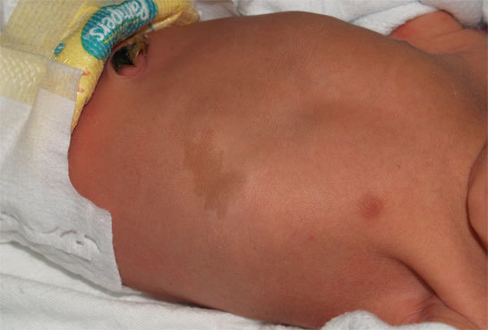 Distinguish from Portwine stains (permanent, unilateral, more intensely colored)