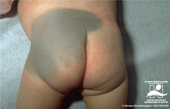 Distinguish from Portwine stains (permanent, unilateral, more intensely colored)