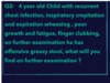 sudden onset of respiratory distress, geen koorts, unilateral wheezing, vaak rechts, en op de x thorax hyperinflation of the right lung with mediastinal shift to the left , to be removed by rigid bronchoscopy from the right main bronchus, to make the diagnosis hard you also need rigid bronchoscopy