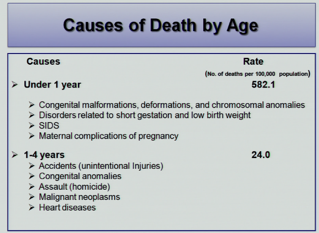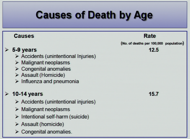 list the top cause of death for children 1-14