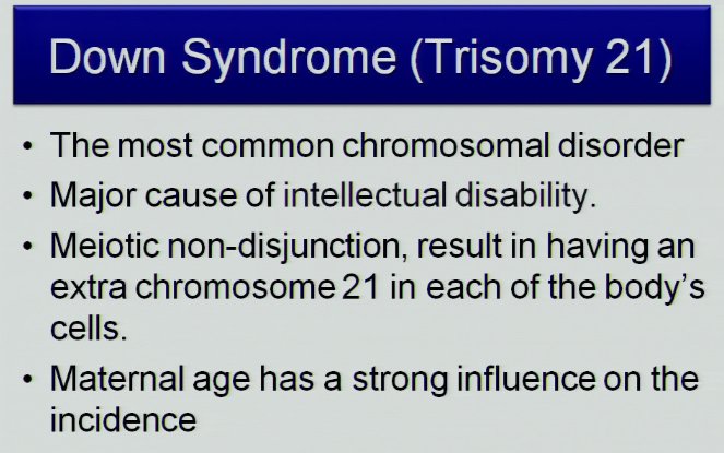 Down syndrome (trisomy 21) is the most common chromosomal disorder