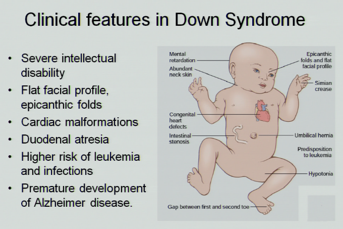 describe the clinical features in Down syndrome