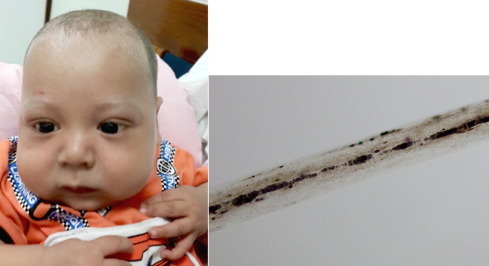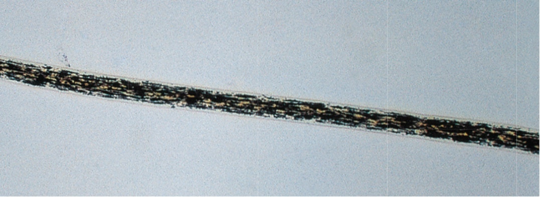 Trichoscopy: large and irregularly spaced melanin