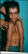 Right and left side affected equally. Minimal spasticity in upper limbs. Lower limb spasticity predominates.