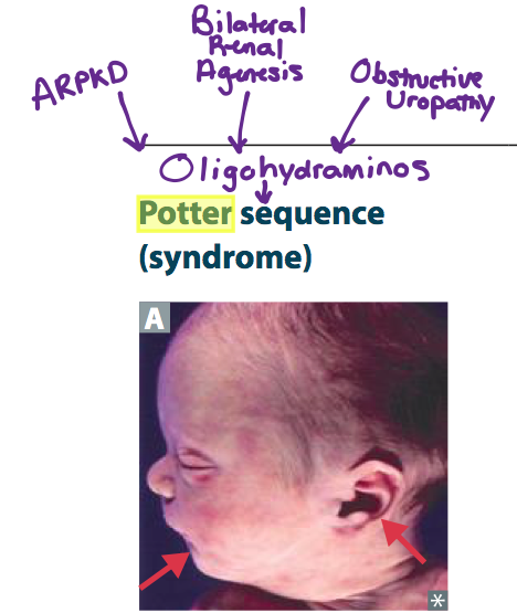 Describe this clinical presentation for this Sequence ; Name the 3 most common causes of Oligohydramnios