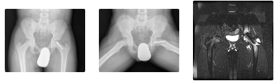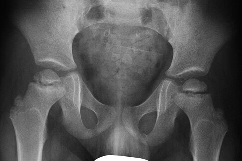 bilateral Perthes of the hips occurs in 11% of cases, in patients with symmetric changes/stages, other diagnoses must be considered such as Meyers dysplasia. Multiple epiphyseal dysplasia is most readily diagnosed by evaluation of other radiographs, in particular of the knee and, if confirmatory, of the spine to assess for spondyloepiphyseal dysplasia.