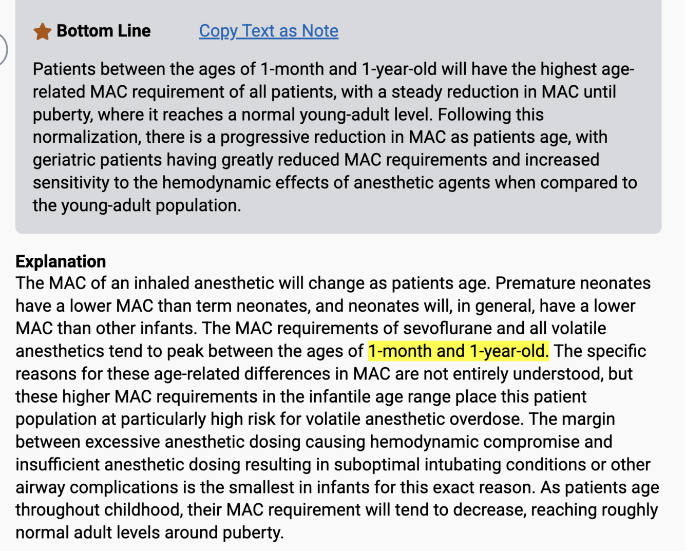MAC requirements for volatile anesthetics tend to peak between 1 month and 1 year of age.