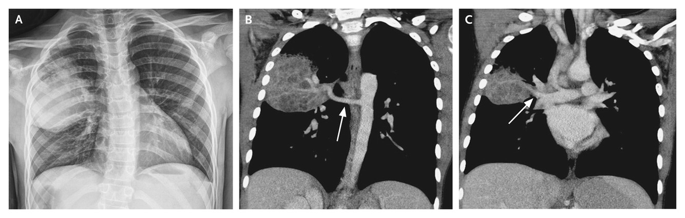 Hypoplastic right lung and anomalous right pulmonary venous connection to IVC. AKA hypogenetic lung syndrome or congenital pulmonary venolobar syndrome.
