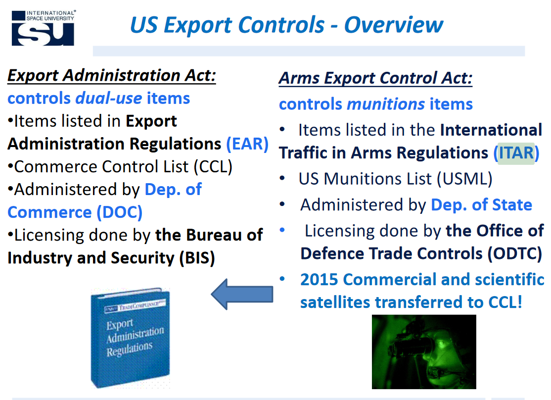 Understand the difference between ITAR and export control in general.
