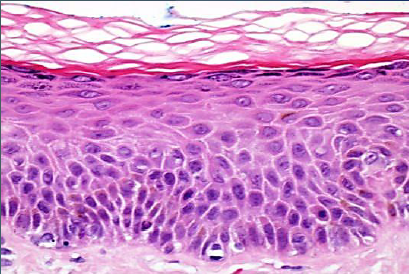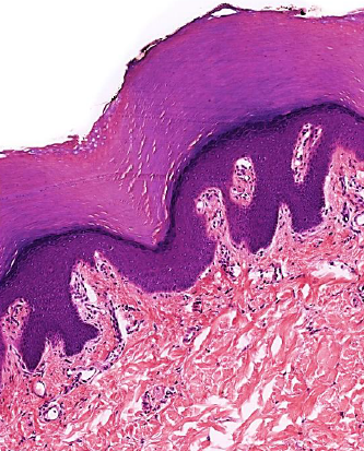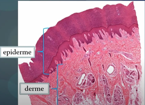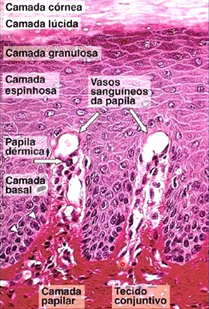 A epiderme é recoberta por epitélio de revestimento pavimentoso estratificado queratinizado.