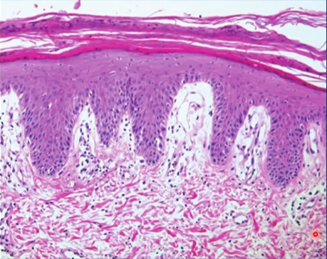 A camada lúcida é evidente em peles finas, porém pode estar ausente em peles espessas.