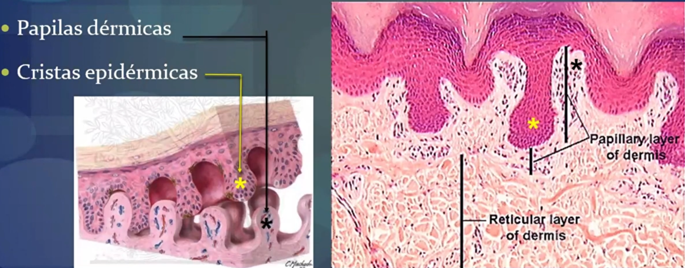 Derme: Papilas dérmicas;