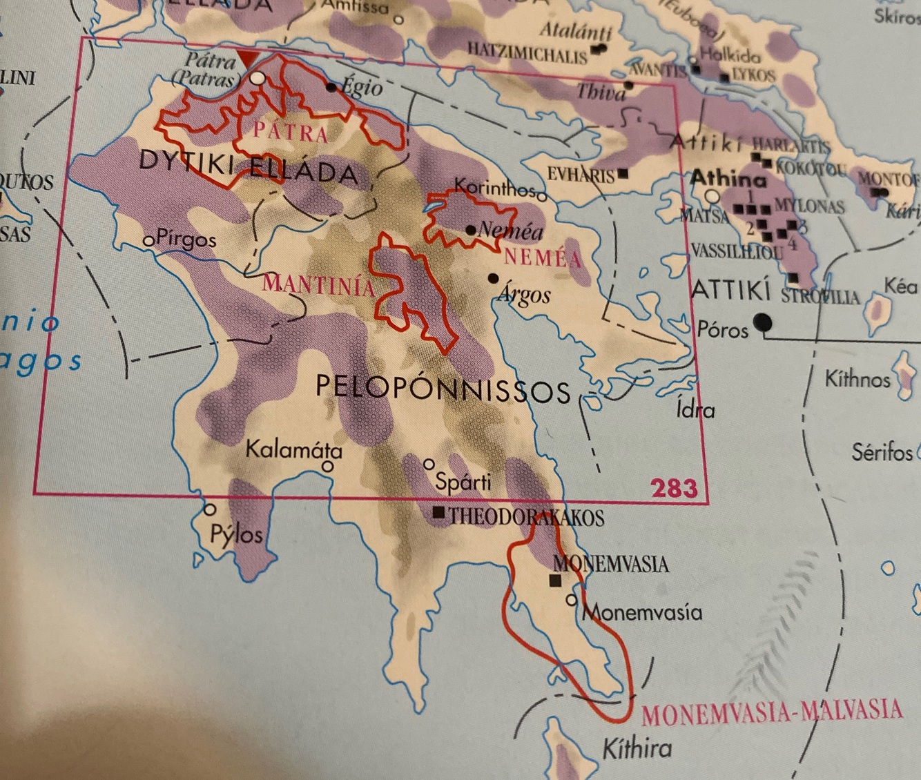 Northeastern portion, peninsula of Athens (Attica) and Island of Evia (Sterea Ellada)