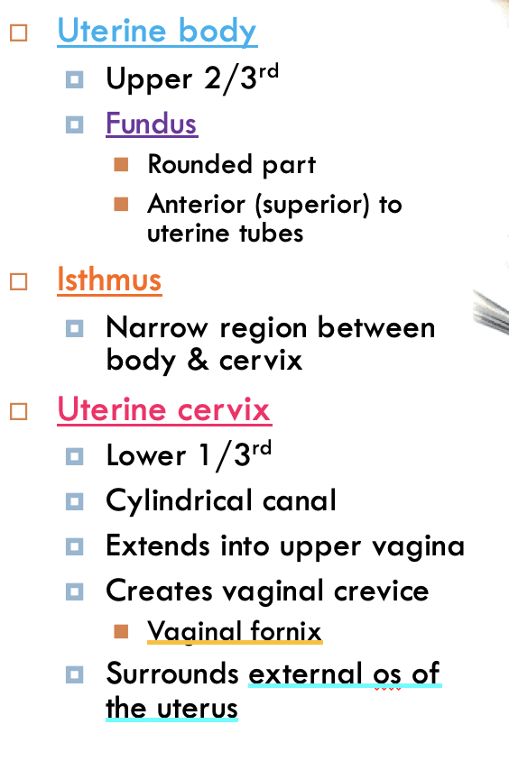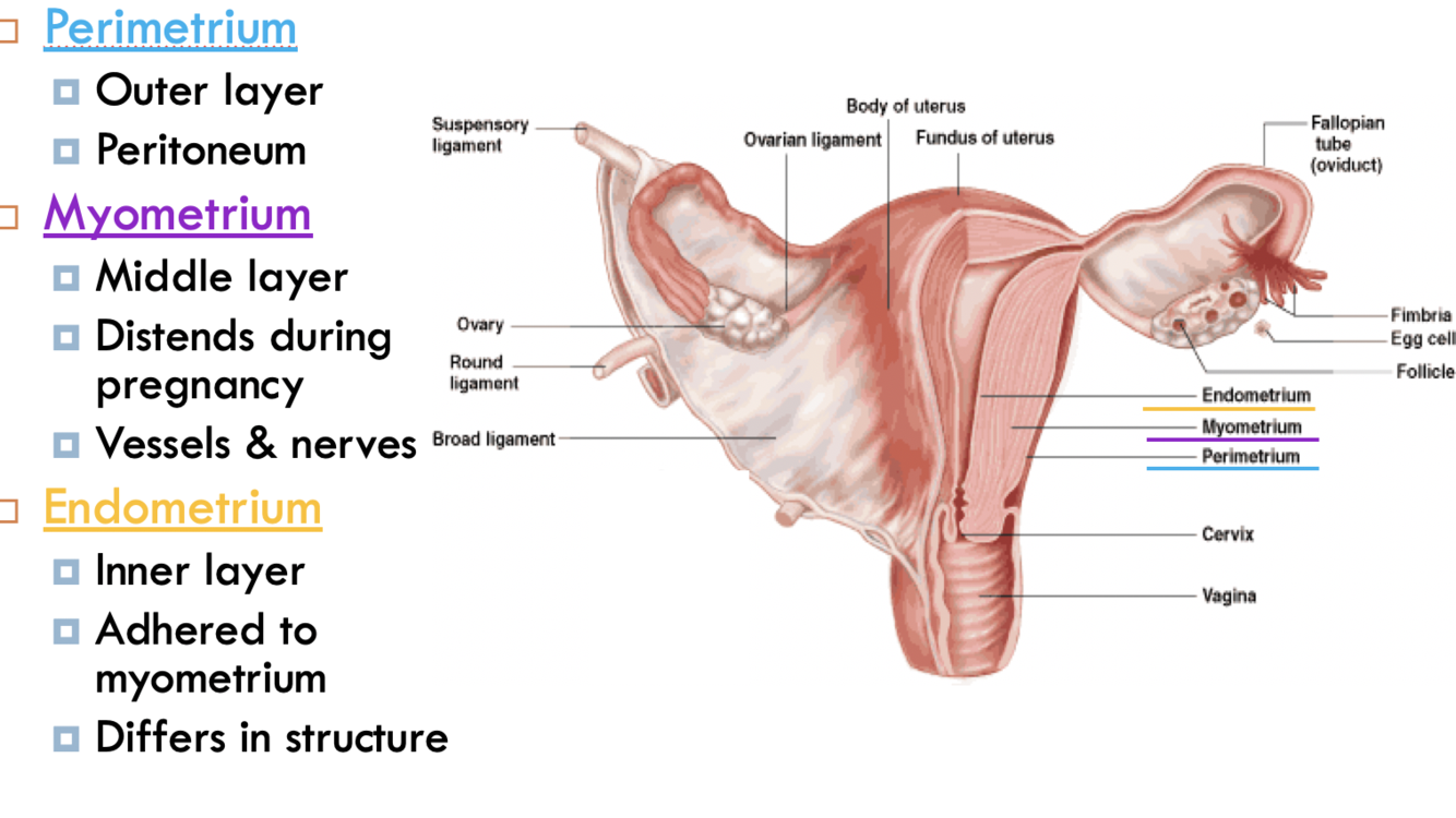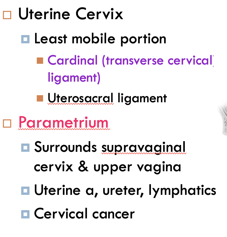 Tethers uterus, passes through inguinal canal, and anchors to labia majora