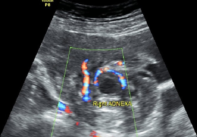 “Ring of fire” flow seen in the adenxa on ultrasound