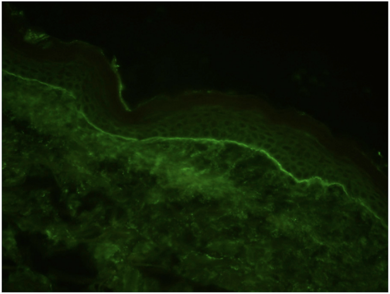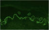 Dépôts linéaires fins continus le long de la membrane basale épidermique
