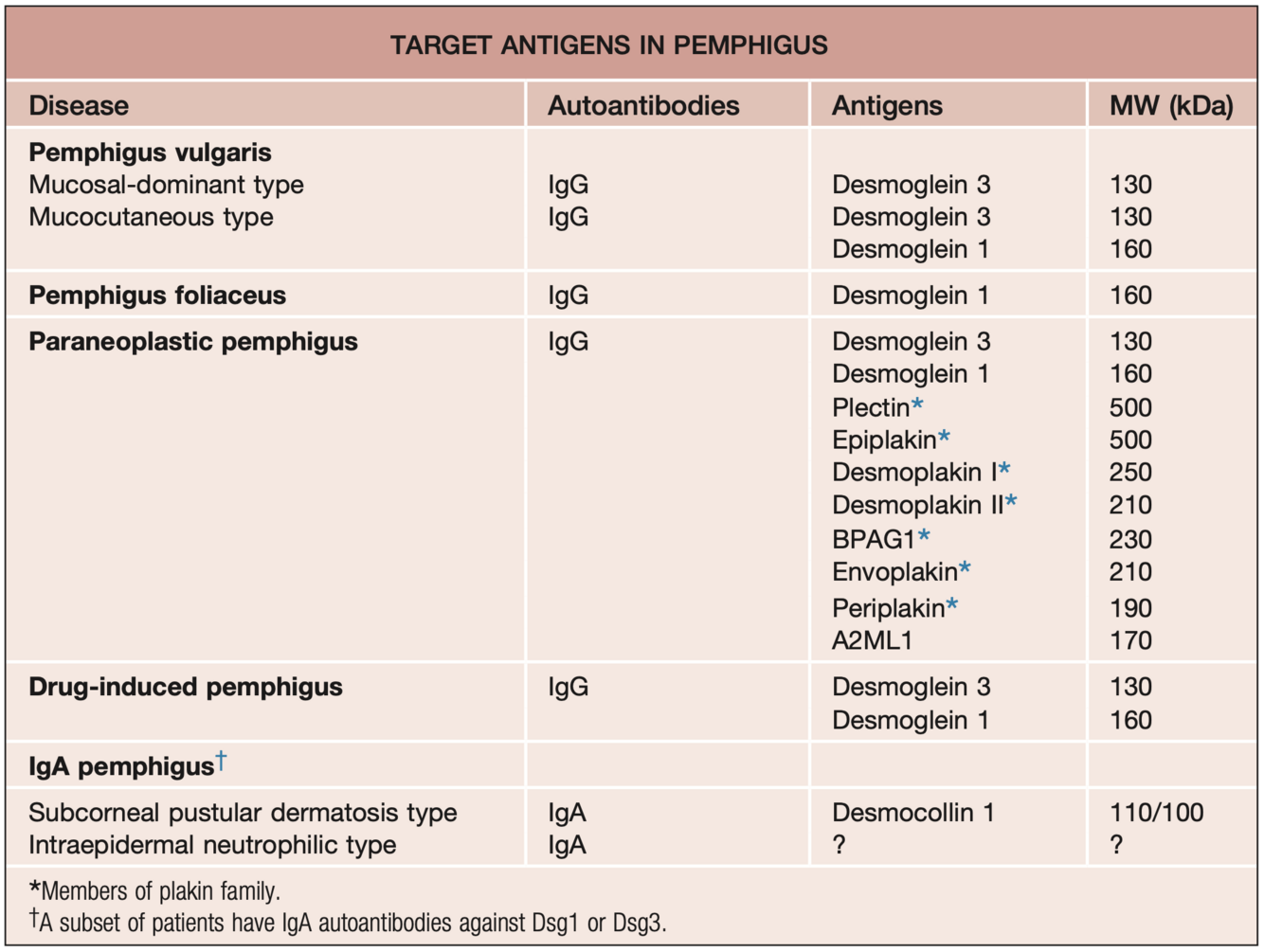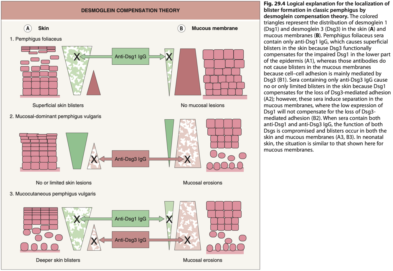 *forme mixte IgG/IgA, 50% ont maladie systémique sous-jacente et auto-anticorps Dsg1, 3, Dsc décrits