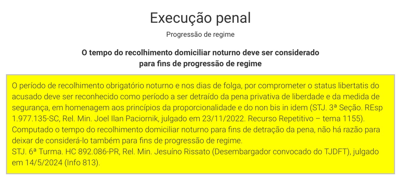 O tempo do recolhimento domiciliar noturno deve ser considerado para fins de progressão de regime?
