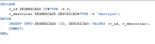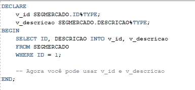 Como declarar uma variável v_id que tenha o mesmo tipo da coluna ID da tabela SEGMERCADO?