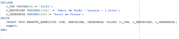 Analise o script PL/SQL abaixo:
