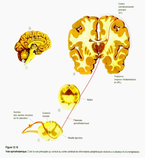 L’information pour la douleur emprunte la même voie que pour la somesthésie pour se rendre au cerveau