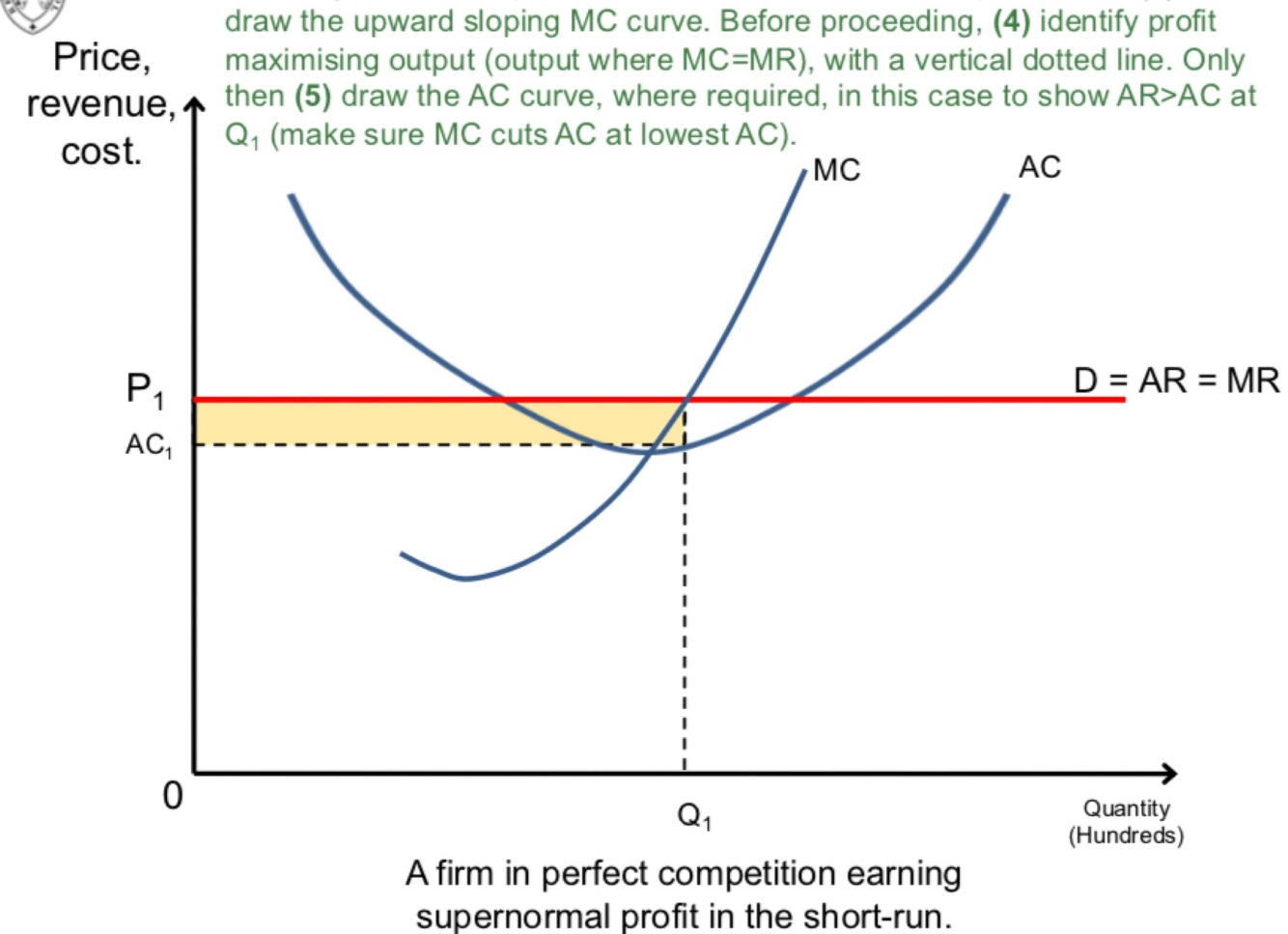 Diagram for a firm in perfect competition in the short run making a supernormal profit