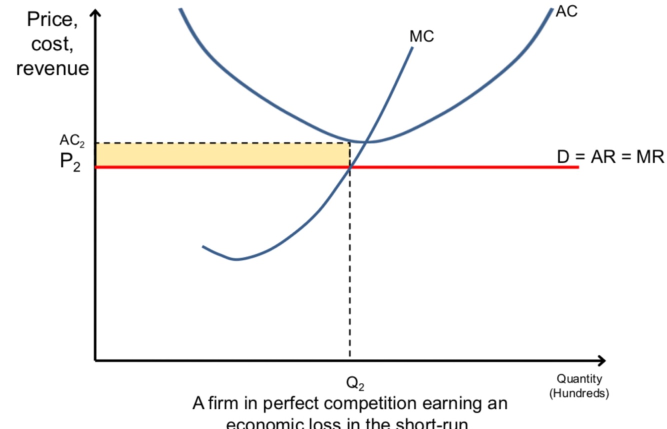 Diagram for a firm in perfect competition in the short run making an economic loss