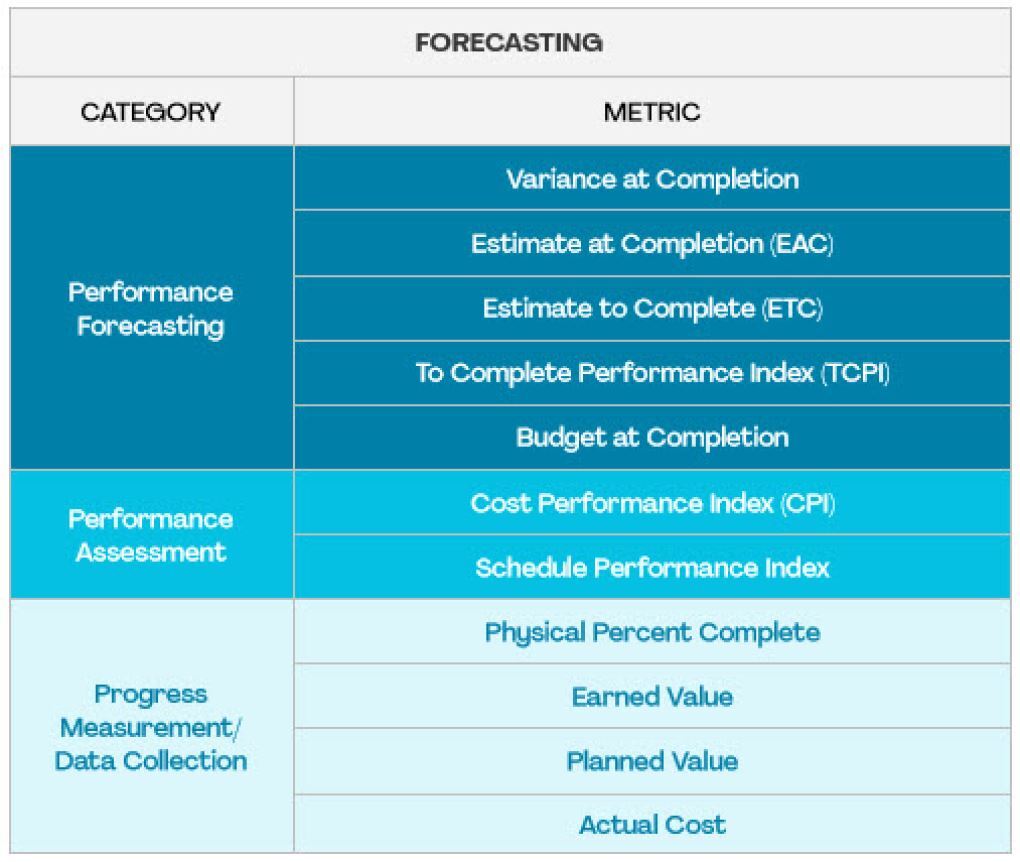 Forecasting metrics (performance forecasting, performance assessment and progress measurement)