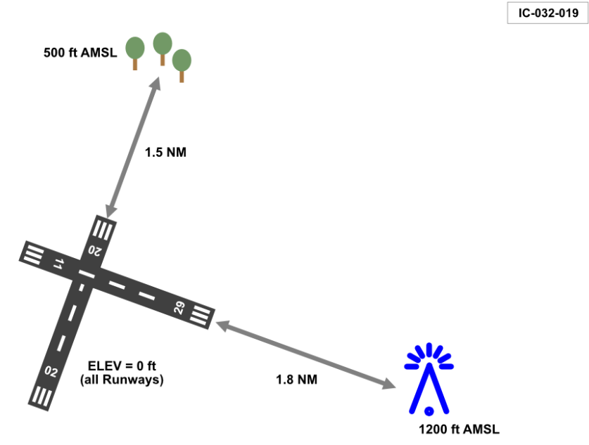 Obstacle height: 300 ft at a distance of 1.2 NM from DER (reference zero)