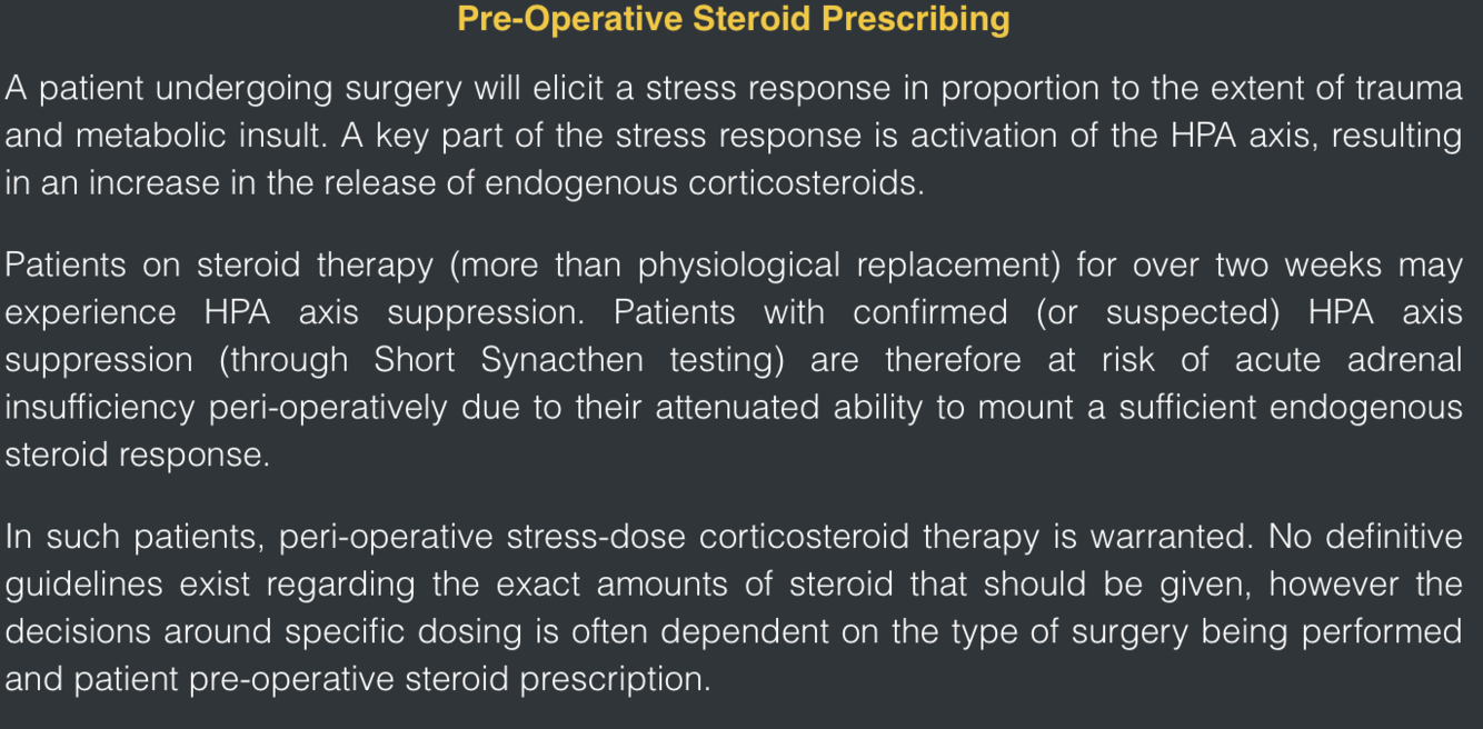 Long-term steroids – must be continued, due to the risk of Addisonion crisis if stopped