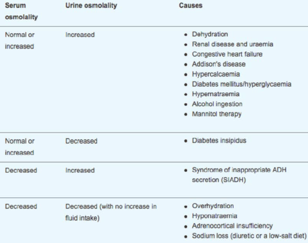 * Calculated osmolality = 2 Na + Glucose + Urea (mmol/L)