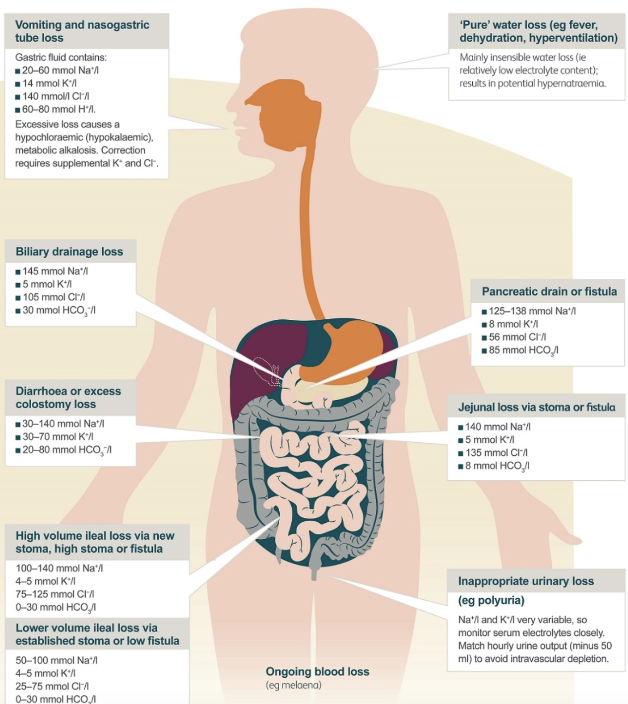 * Total body water = 60% of weight (e.g. 70kg human) = 42L
