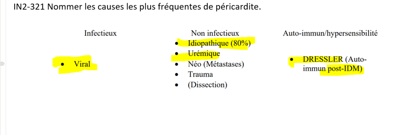 nomme les causes les plus fréquente de péricardite