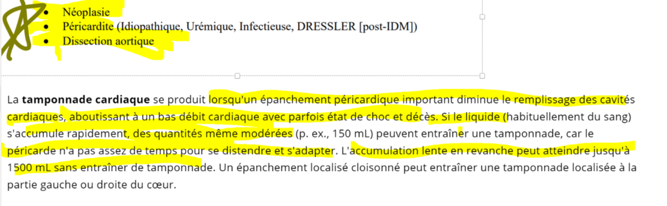 donne les causes les plus fréquentes de tamponnade cardiaque