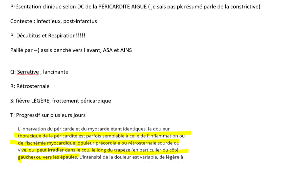 donne la présentation clinique de la péricardite aigue