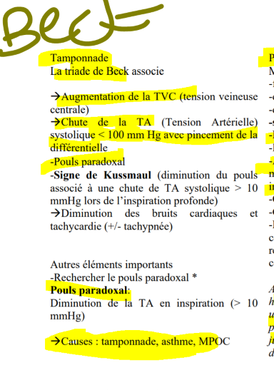 présence pouls paradoxal et de signe de kussmaul aussi!!