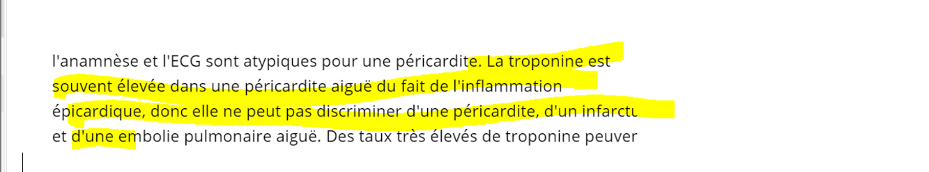 si l’ecg est pas claire, c’est grace au tropo que tu va faire différence entre periccardite et infarctus v/f?